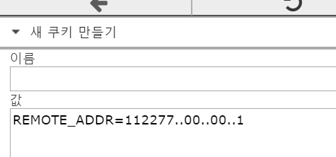 edit cookie를 켜서 REMOTE_ADDR에 112277..00..00..1 을 대입해 주도록 하자.
