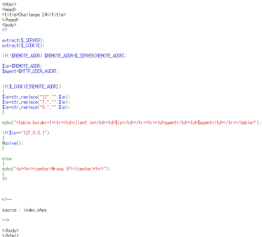 전체적의 의미를 파악하기 전에 solve부터 확인한다. $ip가 127.0.0.1 이면 풀린다고 한다.