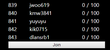 join을 누르면 내 아이디가 위의 랭킹에 뜨게된다.