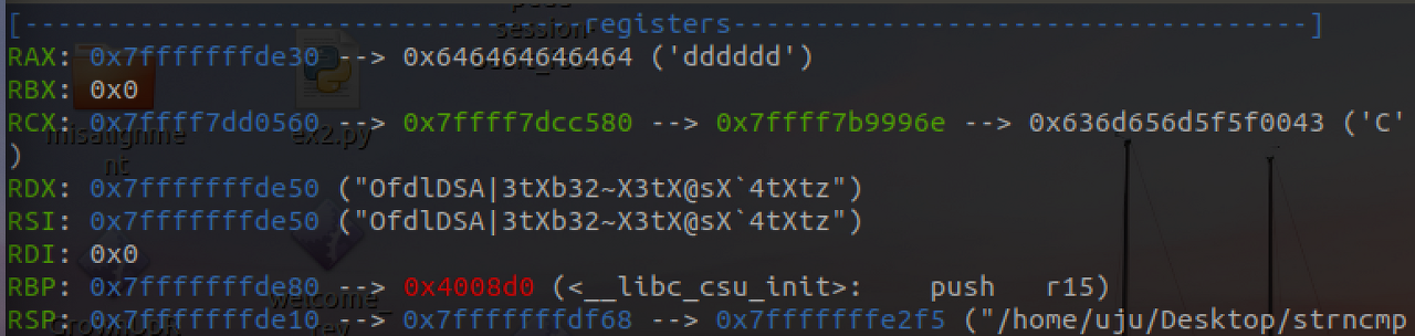 내가 입력한 dddddd와 비교하는 값을 레지스터를 통해 확인하였다.