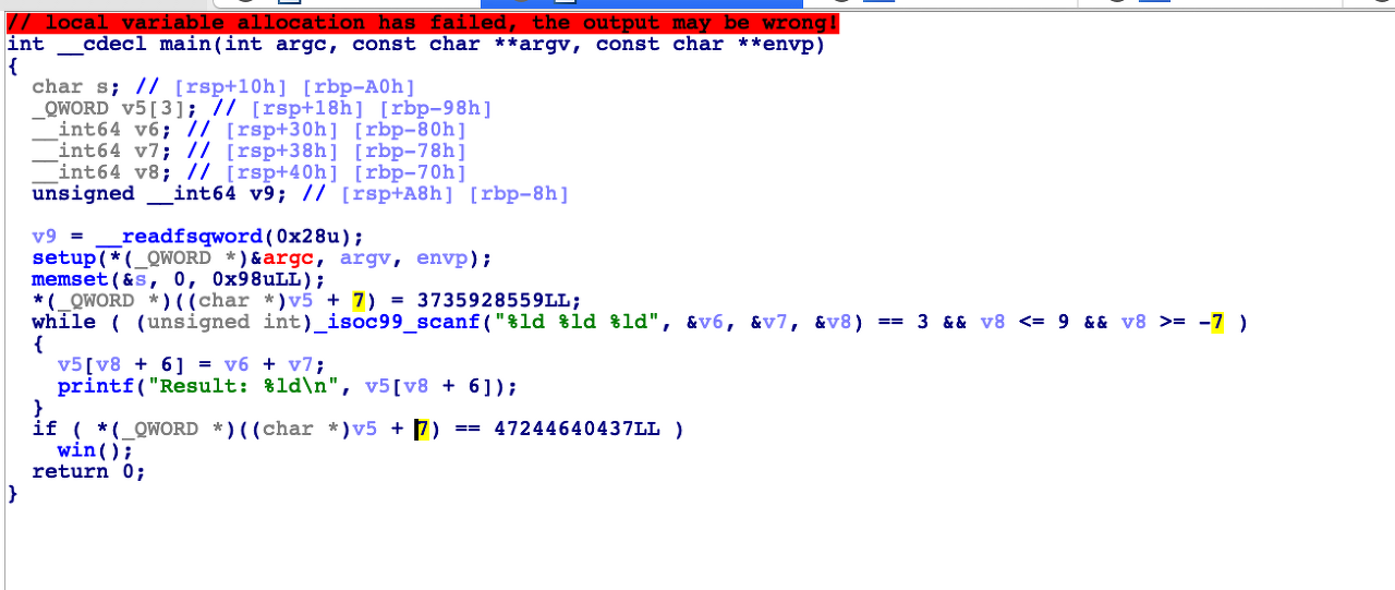 V5+7을 0xdeadbeef--->0xb000000b5 로 바꾸어주면 win함수 실행