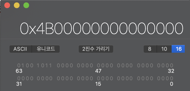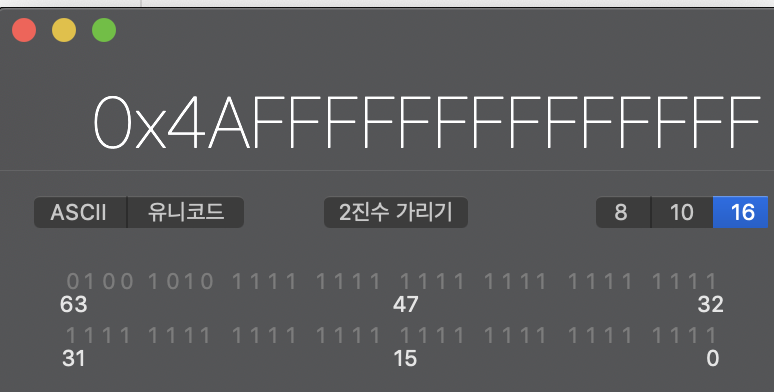 먼저 위에 진한 초록색 부분인 0xb500000000000000의 msb가 1이여서 음수라는 것을 알수있다.